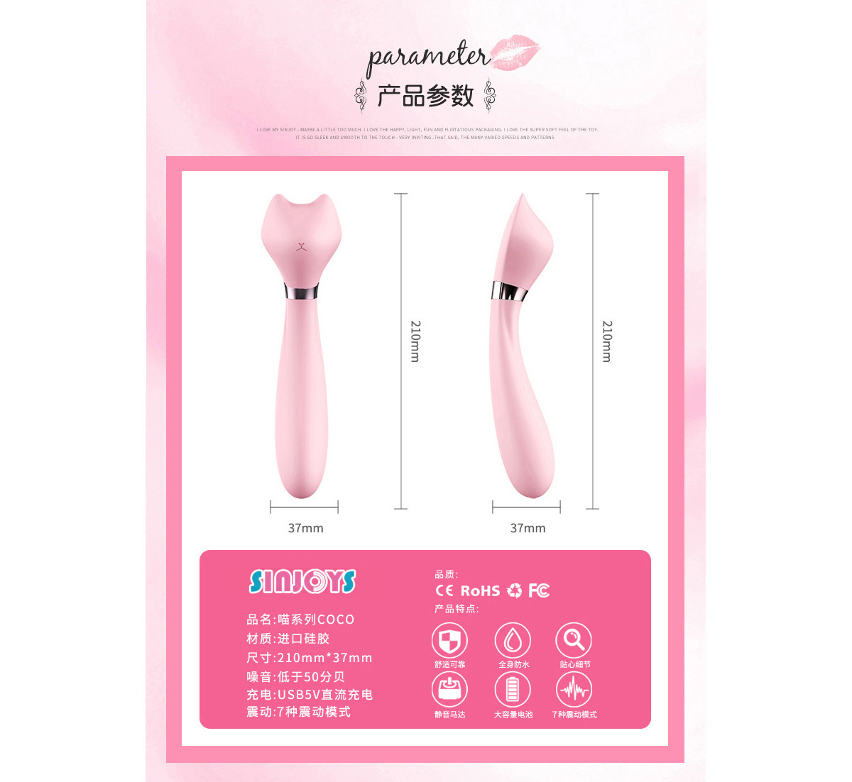 赛洛诗 灵动猫咪震动棒 变频防水 COCO震动棒 成人用品