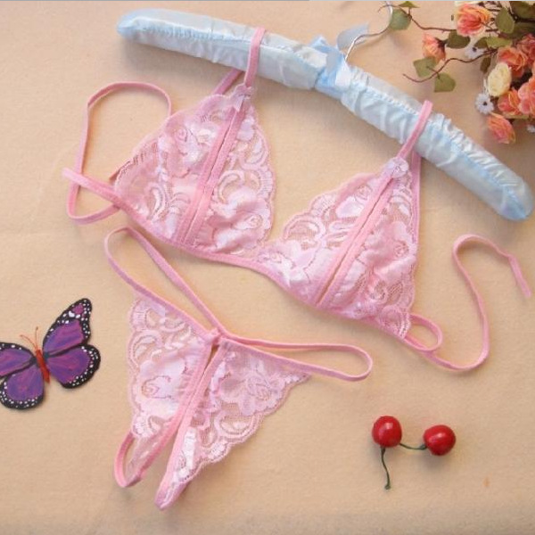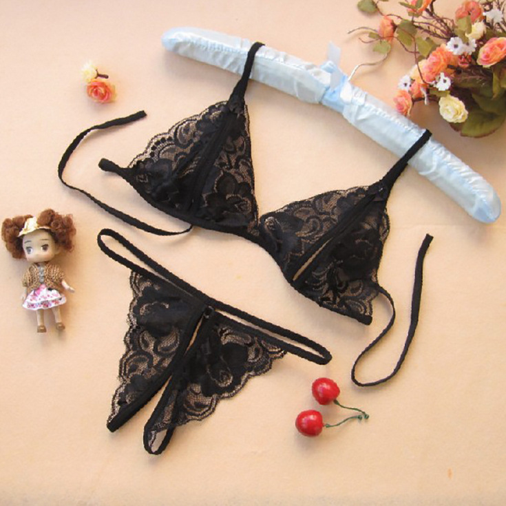 • 露咪咪开档三点式 女式2件套装情趣内衣 蕾丝花边透明衣