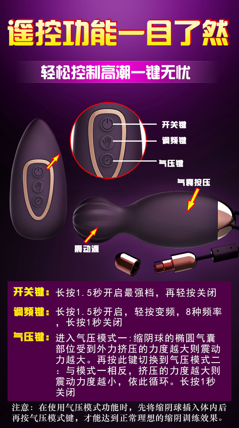 • 遥控气压感应缩阴球 女用充电震动情趣跳蛋 缩阴哑铃振动自慰器