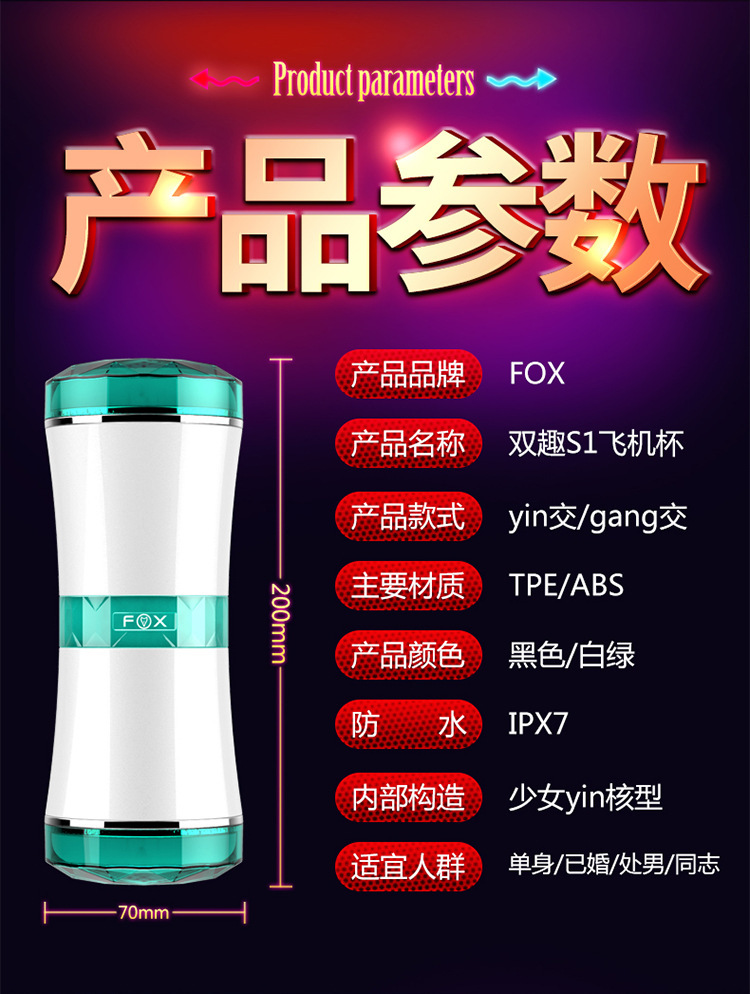 • FOX 小腰飞机杯 双通男用自慰器 男性用品 成人用品